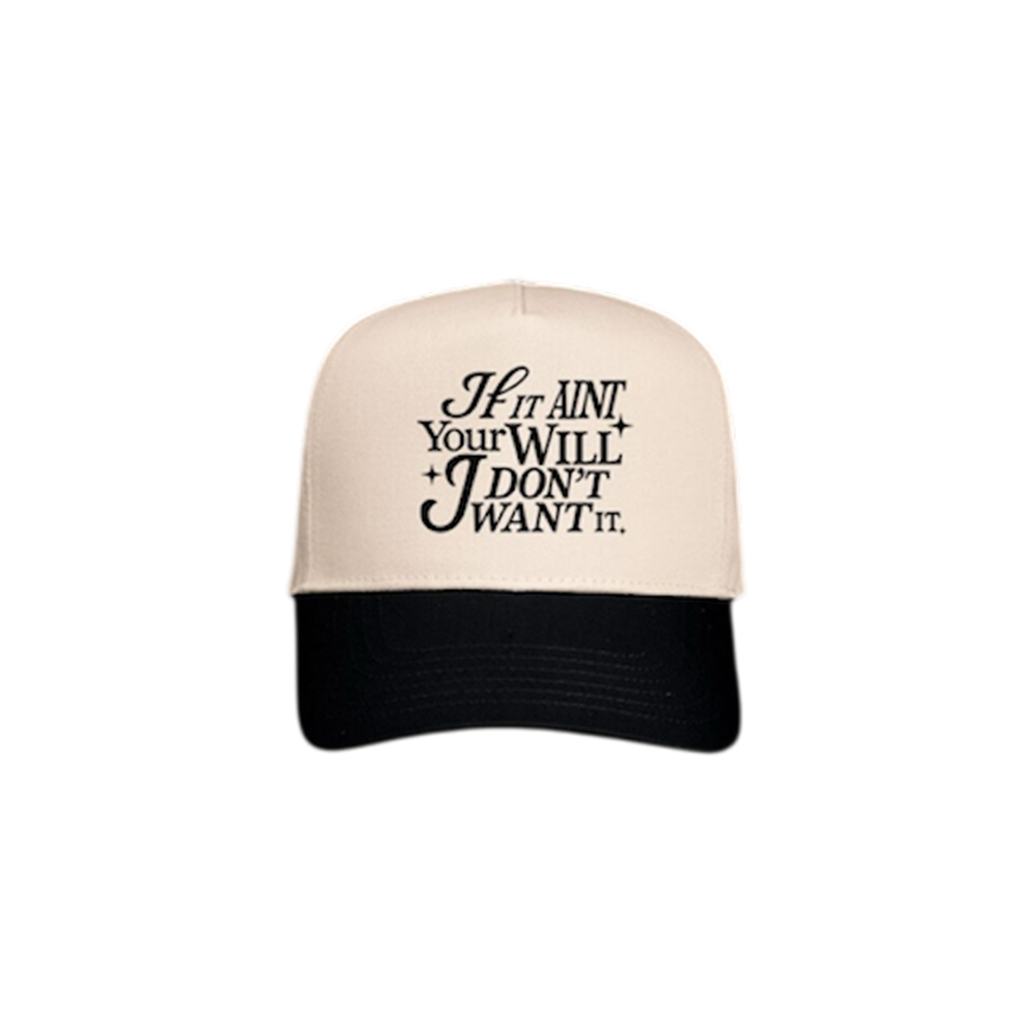 This cream and black trucker hat is inspired by Lee Vasi’s powerful song “Your Will” and stamped with the lyric that says it all:
